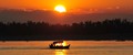 Sonnenuntergang mit einem Boot in Kratie auf dem Mekong in Kambodscha