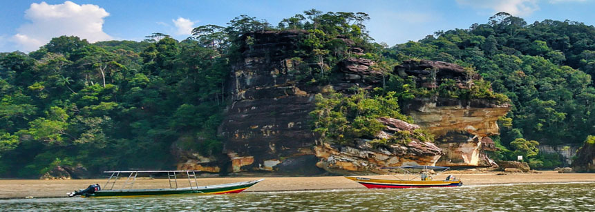 Langsam geht die Sonne unter und das Santubong-Flussbett wird von goldenem Licht durchflutet. Das Wasser plätschert, Vögel geben ihr Abendkonzert und gewaltige Urwaldbäume recken sich gen Himmel. Ein Nasenaffe schwingt am Ufer akrobatisch von Ast zu Ast. Wenn die Dunkelheit einbricht, beginnen Hunderte von Glühwürmchen ihre magische Tanzparty, sie flimmern über das Wasser und zaubern eine romantische Atmosphäre in die Mangrovenwälder.